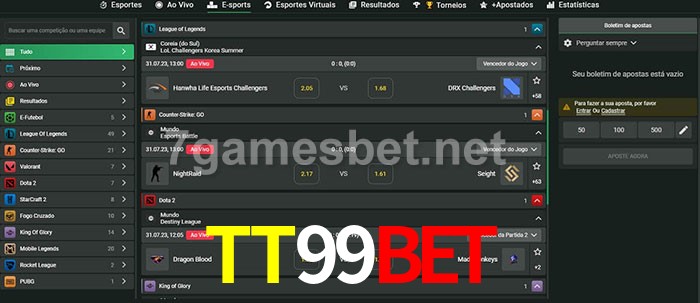 A aposta TT99Bet oferece aos jogadores a experiência mais conveniente de apostas em eSports!